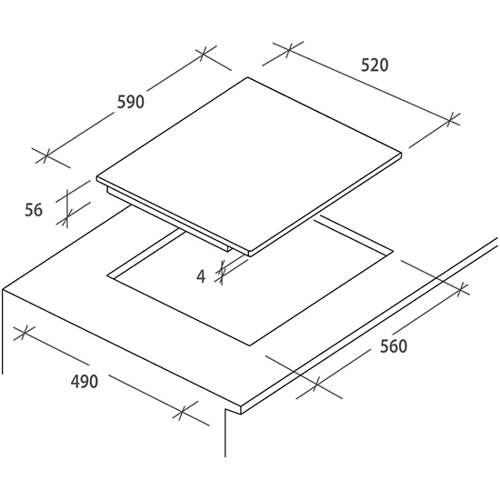 4 ZONAS VITROCERÂMICA - LARGURA 60CM - 6,4kW - PRETO
