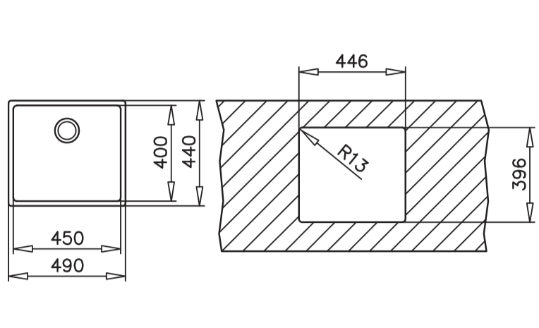 MEDIDA EXTERNA 490X440MM - APLICAÇÃO SOB TAMPO - MÓVEIS 60CM - INOX